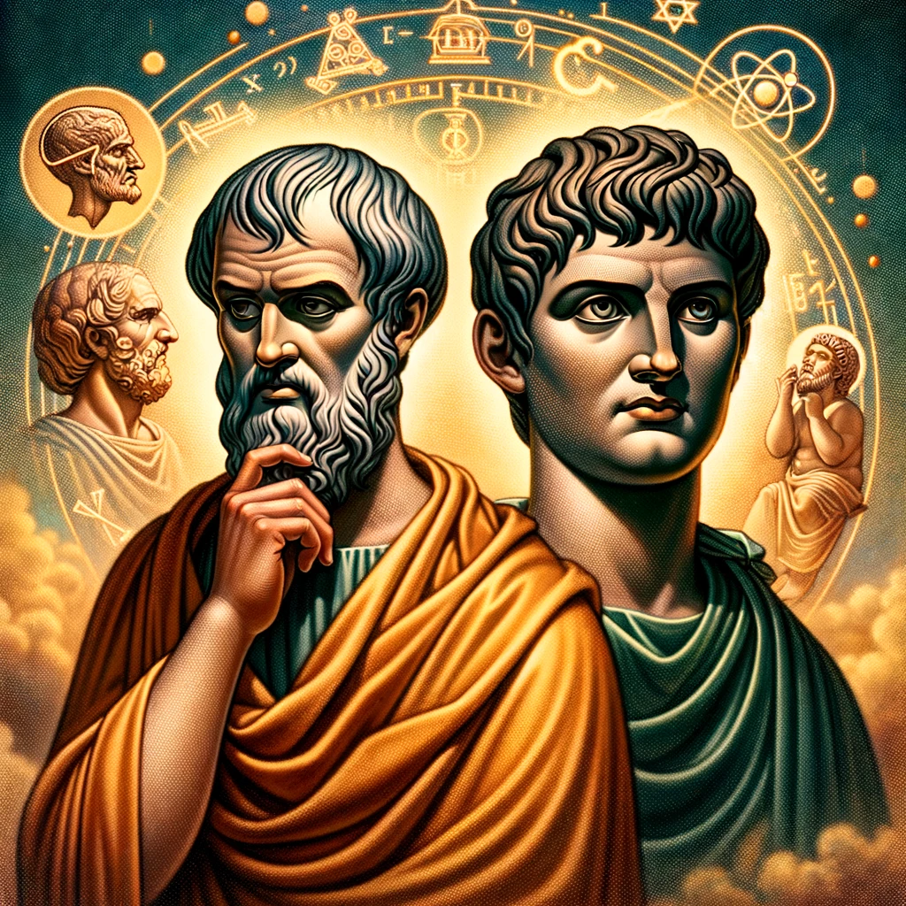 Aristoteles (384-322 v. Chr.), ein Schüler Platons und Lehrer von Alexander dem Großen, war ein vielseitiger griechischer Philosoph und Wissenschaftler. Er gründete seine eigene Schule in Athen, das Lykeion. Aristoteles‘ Werke umfassen eine breite Palette von Themen, darunter Logik, Metaphysik, Ethik, Politik, Biologie und Poetik. Seine Logik, besonders die Lehre vom Syllogismus, prägte die westliche Denkweise nachhaltig. In der Metaphysik betonte er die Bedeutung der Substanz und Form, und seine Ethik, insbesondere die „Nikomachische Ethik“, konzentriert sich auf das Konzept des „goldenen Mittelwegs“. Seine Politiktheorie, in „Politik“ dargelegt, untersucht die Struktur und Funktion des Staates. Aristoteles‘ Ansatz zur Klassifizierung der Wissenschaften und sein empirisches Vorgehen beeinflussten tiefgreifend die Entwicklung der westlichen Wissenschaft. Sein Einfluss erstreckt sich über viele Jahrhunderte und beeinflusst bis heute philosophische Diskurse.